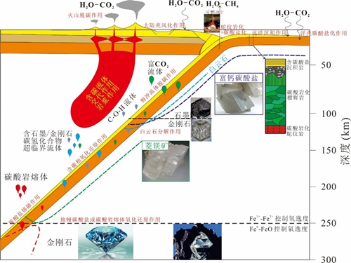 俯冲带深部碳循环示意图