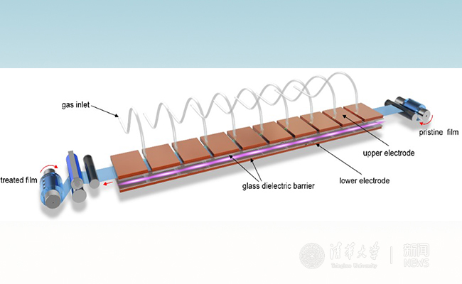 为解决上述问题,课题组提出采用等离子体增强化学气相沉积技术在聚合物薄膜表面快速沉积具有宽能带隙的纳米绝缘层,以提高电极/介质界面处的电荷注入势垒,从而抑制聚合物电介质薄膜在高温下的泄漏电流,大幅提高了聚合物电介质薄膜在高温、高电场下的储能特性。该方法能够实现在大气压条件下快速沉积,具备连续处理的能力;其室温沉积特性使得该方法直接适用于任意聚合物介质薄膜。通过引入卷对卷薄膜加工技术和动态沉积,可实现规模化、连续化生产。该方法具有无污染、简便、高效、低成本等特点,并且可与现有聚合物电容器薄膜生产线相兼容。目前课题组已在该技术领域申请多项国内专利和PCT专利,并正与相关企业联合进行产业化开发。