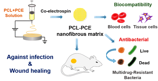 此成果以“Biomimetic Elastomeric Polypeptide-Based Nanofibrous Matrix for Overcoming Multidrug-Resistant Bacteria and Enhancing Full-Thickness Wound Healing/Skin Regeneration”为题,发表在国际著名期刊ACS Nano杂志(影响因子13.709)上。前沿院为该论文的第一作者和唯一通讯作者单位。此前,雷波课题组在设计新型生物活性材料用于骨组织再生(Biomaterials, 2018, 178, 36; Advanced Functional Mateirals, 2015, 25, 5016)、骨骼肌再生(Biomaterials, 2018, 157,40; Biomaterials, 2018, 175, 19)、肿瘤诊疗(ACS Nano, 2018, 12, 2017;Biomaterials, 2015, 59, 21)已经取得了一系列进展。