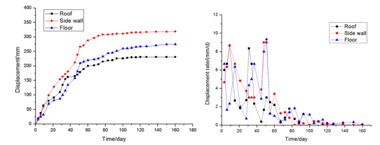 图4 巷道表面位移监测结果(代表性监测断面)