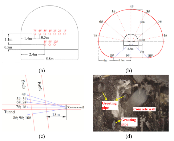 基于以上问题,中国科学院武汉岩土力学研究所地下工程组研究团队以淮南矿区顾桂井田F104断层破碎带为工程依托,针对井下高压分步复合立体注浆技术、新型锚注一体化技术、断层破碎带成套支护等关键问题展开研究和现场应用试验。