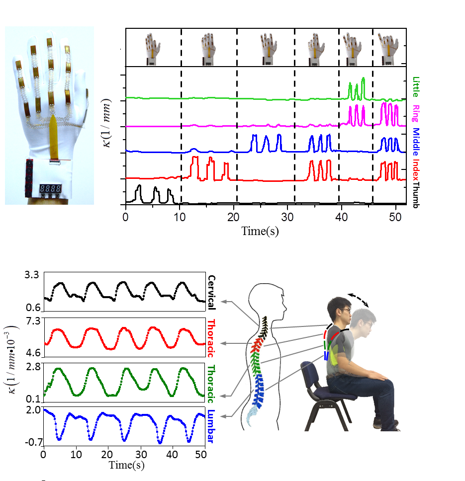 图2. 曲率传感器用于手势识别和坐姿监测