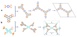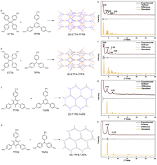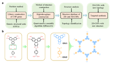 图2. 左图:发现的COF材料新型拓扑结构;右图: COF材料合成,其中基于全新ffc拓扑的材料采用的是具有四边形几何形状的GSU作为核心构建单元
