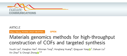 在国家自然科学基金和国家重点研发计划等项目资助下,我校化学工程学院阳庆元教授与仲崇立教授研究团队近期在材料基因基因组学领域取得重要进展,在国际上提出纳米多孔材料高通量构筑的全新基因组学方法论,并与上海有机所的赵新教授团队合作,通过定向实验实现了所设计的新型拓扑结构材料。研究成果以“Materials genomics methods for high-throughput construction of COFs and targeted synthesis”为题,于2018年12月10日在《自然•通讯》上在线发表。该期刊主要刊登自然科学领域最新的科研进展,其最新发布的影响因子为12.353。论文的第一作者为化学工程学院博士生兰友世,通讯作者为阳庆元教授、仲崇立教授和赵新教授,论文链接:https://www.nature.com/articles/s41467-018-07720-x