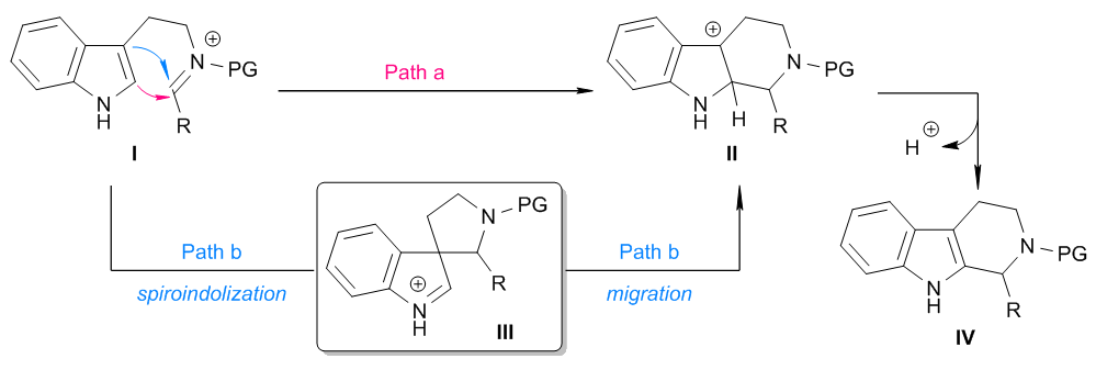 图3 Pictet–Spengler反应的两种极限机理