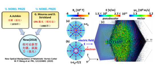 2018年诺贝尔物理学奖分别颁给了A. Ashikin, G. Mourou, 和 D. Strickland,表彰他们在激光物理领域的突破性发明。1970年,A. Ashikin第一次发明光镊技术并将其应用于生物学领域,实验发现:利用连续激光的光压可以实现微米量级粒子的加速和捕获。1985年,G. Mourou, 和 D. Strickland两人则发明了啁啾脉冲放大(CPA)激光技术,开启了相对论飞秒激光驱动等离子体相互作用的大门。这两项都非常值得被授予诺贝尔奖,但它们之间并没有那么紧密的联系。