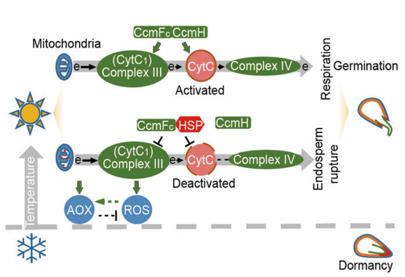 研究发现,当抑制棉花HSP24.7表达的时候,种子的萌发速度减缓,即使是在相对高温的条件下,也是萌发缓慢,仿佛种子一直处于低温环境。相反,HSP24.7的活跃表达可以让棉花种子迅速萌发,在相对低温的条件下也可以迅速完成,仿佛一直处于温暖条件。经检验,这组实验中,种子萌发速度的差异并不是胚的活力差异造成的,而是胚乳膜的强度(膜穿刺力,puncture force)差异,也就是说HSP24.7通过对温度的感受,改变了束缚种子萌发的物理力量。