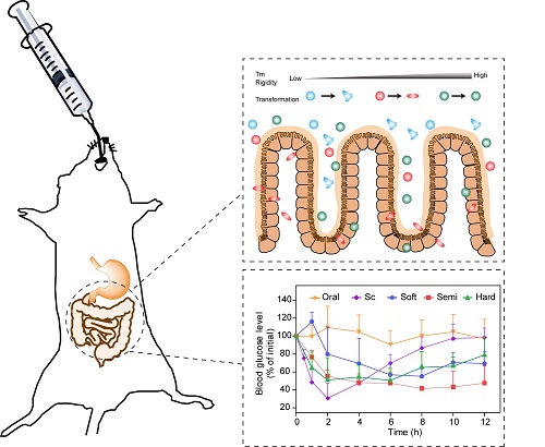 图:具有不同相变温度和刚度的脂质体大鼠口服灌胃后的体内输运方式及药物递送效果 (供稿部门:甘勇课题组;供稿人:俞淼荣) |
