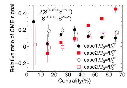 图示:不同形变条件下同质异荷素碰撞中的手征磁效应信号的相对差别。