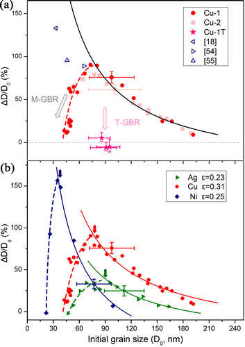 图(a) 纯Cu相对晶粒尺寸变化率( |