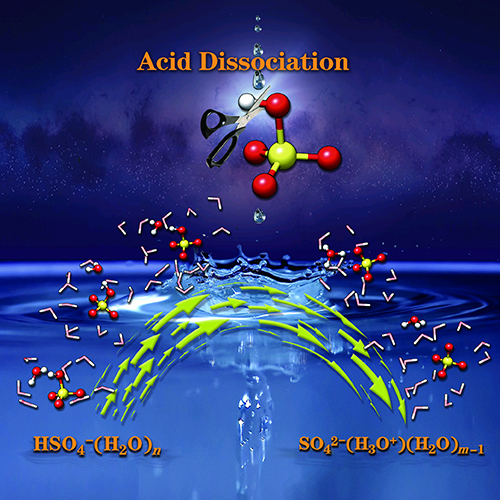 酸解离反应是溶液相的基本反应之一,在许多化学和生物等过程中起着非常重要的作用。然而,凝聚相存在大量团簇、结构复杂,解释“需要多少个水分子才能使酸发生解离”等基本科学问题仍然是一个严峻的挑战。