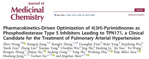 近日,沈敬山、蒋华良、朱维良、许叶春和阿吉艾克拜尔·艾萨研究团队在期刊Journal of Medicinal Chemistry(美国化学会)上发表了题为Pharmacokinetics-Driven Optimization of 4(3H)-Pyrimidinones as Phosphodiesteras Type 5 Inhibitors Leading to TPN171, a Clinical Candidate for the Treatment of Pulmonary Arterial Hypertension的封面文章。文章报道了研究人员从肺动脉高压(PAH)治疗的临床需求出发,经过以药代动力学性质优化为导向的精细“结构微调”,最终发现并确定候选药物TPN171的过程。