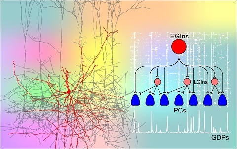 图注:在大脑皮层发育过程中,先驱中间神经元(EGIns)与大量兴奋性神经元(PCs)形成突触联系,影响大脑皮层同步化网络放电活动(GDPs),进而调控晚期产生中间神经(LGIns)至兴奋性神经元的抑制性输入。