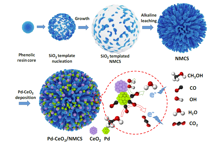 上述研究成果近期以《多孔含氮碳球负载高分散性钯—二氧化铈复合催化剂的甲醇氧化电催化研究》(Highly dispersed Pd-CeO2Nanoparticles Supported on N-doped Core-Shell Structured Mesoporous Carbon for Methanol Oxidation in Alkaline Media)为题发表在国际权威催化学术期刊《美国化学会催化》(ACS Catalysis)上,影响因子11.38。该论文第一作者为西安交大青年教师谭强,柳永宁教授为通讯作者,合作者包括西北大学朱海燕教授和美国纽约州立大学布法罗分校武刚副教授。西安交大材料科学与工程学院为论文的第一通讯单位。柳永宁教授课题组多年来一直在燃料电池、锂离子电池材料及超级电容器等能源材料与技术领域进行探索和研究,多项研究成果发表在国际著名期刊。
