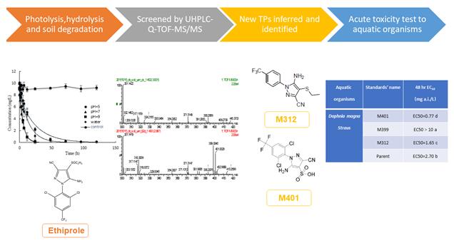 近日,中国农业科学院植物保护研究所农药残留与环境行为研究组郑永权研究员团队在Water Research(5年IF: 8.424)上在线发表了“Degradation products and pathway of ethiprole in water and soil”的研究论文,运用UHPLC-Q-TOF/MS解析乙虫腈在环境中的降解产物,评价了乙虫腈降解产物对环境中非靶标生物的毒性,为其它农药降解产物的鉴定提供新思路。
