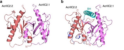 (a) 自由AcrIIC2结构 (b) AcrIIC2-BH复合物结构