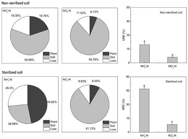 玉米是我国三大粮食作物之一,氮肥用量大,利用率低。玉米是一种在旱作条件下栽培的作物,其生长的土壤硝化作用一般较强,无机氮源中硝态氮比例较高,所以传统上玉米被认为是一种偏好硝态氮作物。课题组通过土培试验(土壤pH 6.5),采用15N标记的方法,比较了外源供应铵态氮和硝态氮对玉米生长和氮肥利用率的影响。研究结果却表明,供应铵态氮的玉米有着更高生物量和氮肥利用率。通过伽马射线对土壤灭菌,阻止土壤硝化作用和微生物对氮素转化的影响,也大幅提高了铵态氮的氮肥利用率,而对硝态氮影响较小。尽管供应铵态氮和硝态氮的氮素损失差异不显著,但是在收获玉米后,供应硝态氮的土壤残留肥料氮显著高于铵态氮,并大多以无机形态存在,极大地增加了淋溶及气态损失的风险。进一步的水培试验结果也表明,玉米在铵态氮中生长好,氮吸收量大。依据这些结果,认为供应铵态氮的玉米氮肥利用率高与玉米对铵态氮的偏好生长和吸收特性有关,利用玉米对铵态氮的高效吸收可以提高其氮肥利用率。这表明可以通过调控土壤氮素转化或改良玉米铵硝偏好遗传特性的方法,来提高玉米氮肥利用率,这一策略的可行性和有效性尚需在田间条件下进一步检验。相关研究结果最近发表在Plant and soil上(Zhang et al., 2019)。该研究得到中国科学院战略性先导科技专项(B类)和国家自然科学基金项目资助。