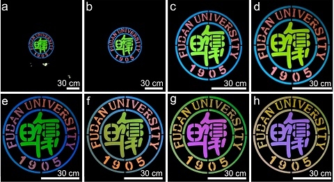该逆反射结构色薄膜在智能显示、交通安全反光设施、防伪标签、结构色涂层和装饰等领域具有重要应用价值。如,薄膜应用于夜间交通反光标牌或广告牌时,由于车灯照明的方向和司机的视角处于同轴,司机从远到近可观察到均一、鲜艳的反光颜色;而路边的行人由于视角和车灯照明方向处于不同轴,随着车辆由远及近可观察到不断变化的反光颜色,从而可有效提醒行人(特别是佩戴耳机或听力受损者)主动避让后方的车辆,避免交通事故的发生。通过一定的照明和观察方式,该薄膜或涂层还可实现其他的智能交通显示功能,如具有交互式变色和闪烁功能的交通信号标牌等。