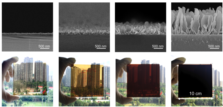 图一 基于自组装SnSe2纳米片阵列的可调谐陷光结构,光捕获能力最高可达96%。