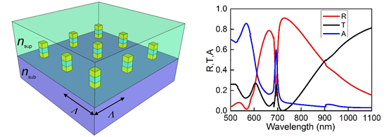表面等离激元共振由于极大地增强了局域光场强度、提高了光与物质之间的相互作用,被广泛应用于传感、成像、纳米激光、非线性光学、调制和探测等领域。传统的由单个金属纳米颗粒所支持的局域型表面等离激元共振(LSPR)和由金属-电介质界面所支持的传播型表面等离激元共振(SPR)均存在场强增强有限和品质因子较低的问题,导致在应用中的性能不够理想。通过将金属纳米颗粒阵列化,可以激发格点型等离激元共振(SLR),因其可以极大降低辐射损耗,故具有更高的品质因子和大范围内更高的场增强。然而现有的SLR要求对称的介电环境,即金属纳米颗粒阵列周围的介质需具有与衬底相同的折射率,这一要求极大地限制了SLR的实际应用范围。例如在光微流传感中,难以找到与水溶液或血液具有相同或相近折射率的衬底材料。
