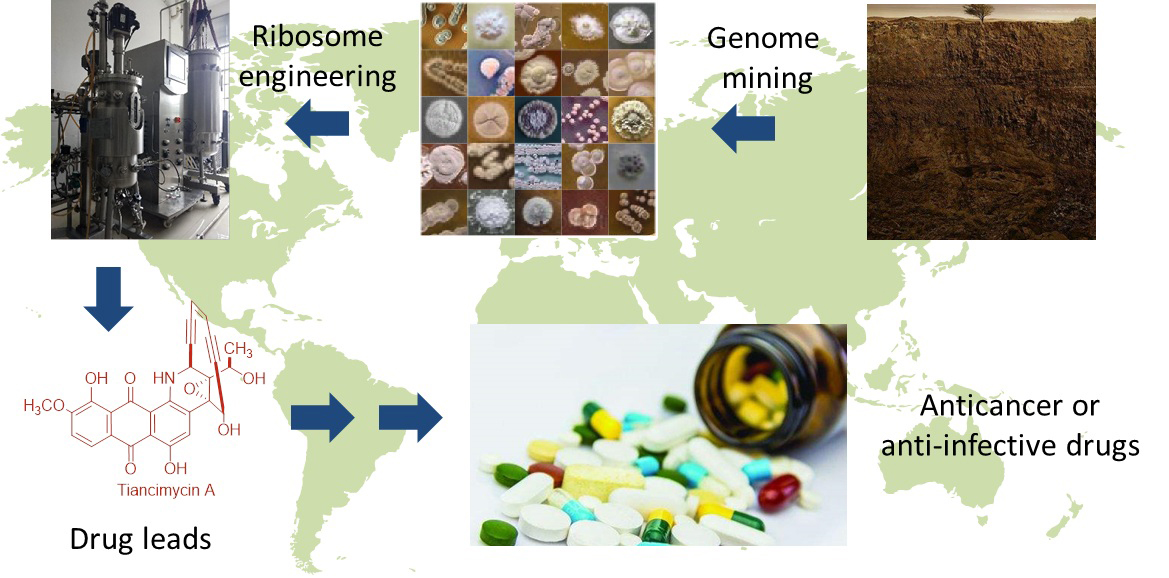 微生物天然产物在野生菌株中的产量往往很低,核糖体工程(ribosome engineering)是一个快速简便的方法,可以大幅度提高微生物天然产物的产量。段燕文团队一直致力于通过核糖体工程,提高微生物天然产物的产量。该团队利用该技术并结合发酵工程,已大幅度提高了抗肿瘤药物先导物天赐霉素或6-脱氧-博来霉素Z的产量(Biotechnol Bioeng. 2019;J Ind Microbiol Biotechnol. 2018;Appl Microbiol Biotechnol. 2018)。最近,该团队受国际微生物领域知名刊物《Antibiotics》(JCR二区,IF = 2.921)专门邀请,以“The application of ribosome engineering to natural product discovery and yield improvement inStreptomyces”(Antibiotics2019,8,133)为题撰写综述,系统总结了核糖体工程在链霉菌天然产物发现和产量提升上的应用潜力。该综述的第一作者是我校2019级博士研究生朱赛彬,通讯作者是段燕文教授和黄勇研究员。