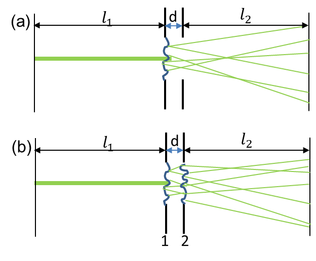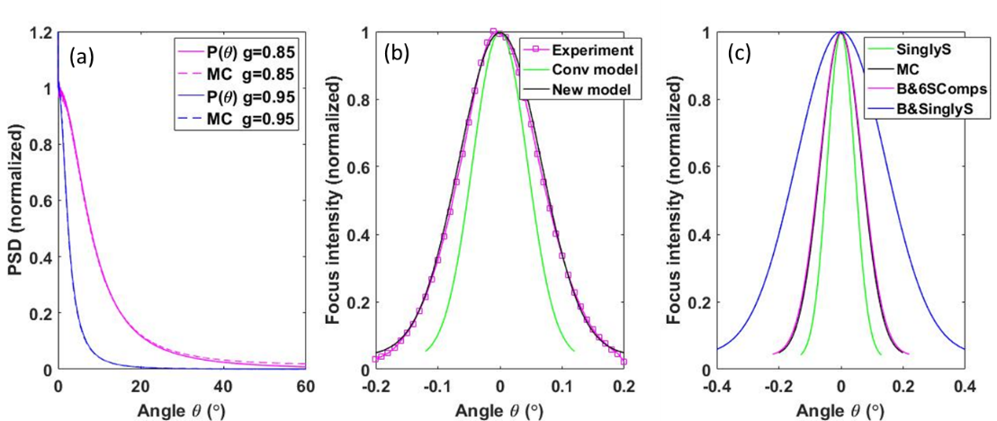 该研究中,研究人员首先从光经过随机相位屏和光阑传播的对比中发现散斑平移不变性,即记忆效应实际上是高阶的空间平移不变性。进而建立双层随机相位屏模型,推导得出记忆效应范围更为准确的公式,通过空间功率谱把体散射介质和随机相位屏联系起来,定量描述了散射系数、散射次数、介质厚度、各项异性因子对记忆效应范围的影响,并从微观分析了不同散射成分的记忆效应范围。
