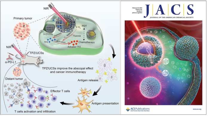 近日,国家纳米科学中心李乐乐课题组在乏氧肿瘤诊疗方面取得重要进展。相关研究成果“Engineering of Upconverted Metal-Organic Frameworks for Near-Infrared Light-Triggered Combinational Photodynamic/Chemo-/Immunotherapy against Hypoxic Tumors”以封面文章发表于《美国化学会志》(J. Am. Chem. Soc. 2020, 142, 3939-3946)。