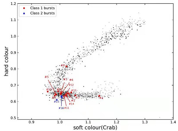英国《皇家天文学会月刊》(Monthly Notices of the Royal Astronomical Society) 近期发表了中国科学院云南天文台高能天体物理研究团组硕士研究生李臣、研究员张国宝、研究员王建成等对一类非常罕见的多峰I型X射线暴的研究成果。该研究在国际上首次报道了四峰结构的热核暴,发现大部分多峰热核暴处于双色图的“转换态”,并指出这类多峰热核暴可能来自中子星表面高纬度点燃的热核暴。