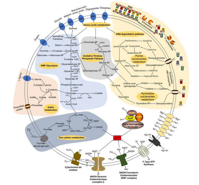 图3 深海软壁菌门细菌主要代谢通路模式图