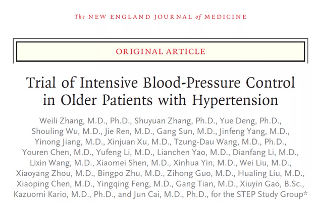 2021年8月30日,中国医学科学院/北京协和医学院阜外医院张伟丽及蔡军共同通讯在国际顶级医学期刊NEJM(IF=91.25)在线发表题为“Trial of Intensive Blood-Pressure Control in Older Patients with Hypertension”的研究论文,在这项多中心、随机、对照试验中,将 60 至 80 岁的中国高血压患者分配到收缩压目标为 110 至低于 130 mmHg(强化治疗)或目标为 130 至低于 150mmHg(标准处理)。主要结局是卒中、急性冠状动脉综合征(急性心肌梗死和因不稳定心绞痛住院)、急性失代偿性心力衰竭、冠状动脉血运重建、心房颤动或心血管原因死亡的复合结局。