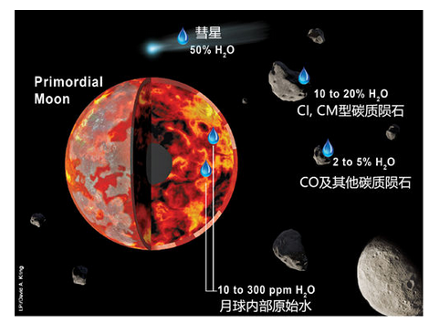 图4. 月球水的可能来源(图片源自:LPI/David A. Kring)