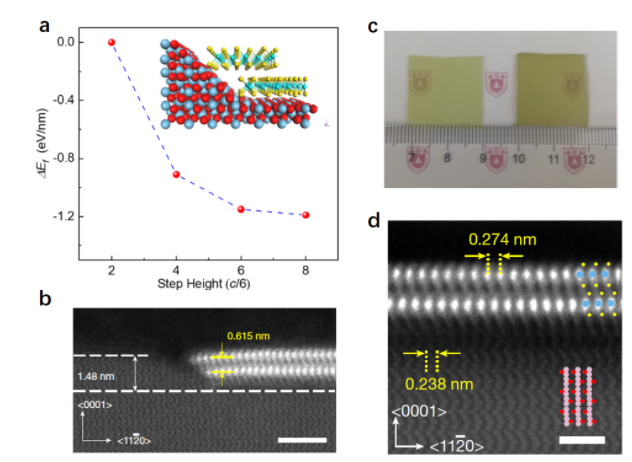 图2. 台阶引导的双层MoS2生长机制。