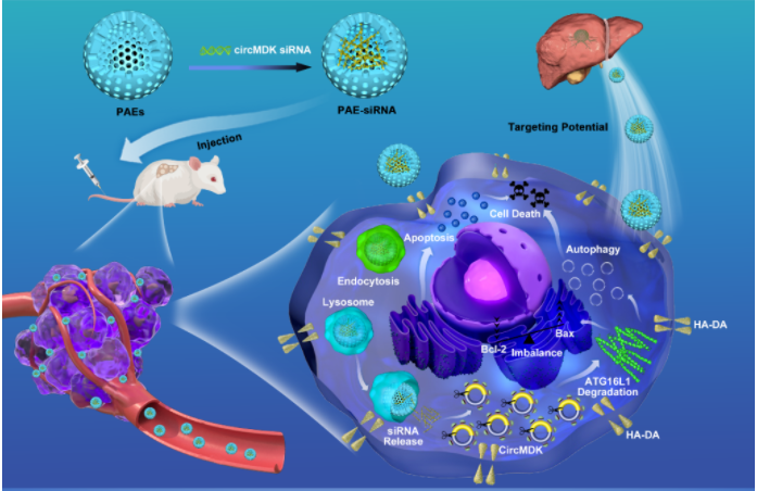 近日,中南大学生命科学学院夏赞贤教授团队在国际学术期刊Molecular Cancer发表了题为“M6A-mediated upregulation of circMDK promotes tumorigenesis and acts as a nanotherapeutic target in hepatocellular carcinoma”的研究论文,首次发现circMDK促进了肝细胞癌(HCC)的进展,并对HCC的发生机制有了新的认识。同时基于该发现,课题组自主研发的PAE-siRNA纳米颗粒在体内可有效抑制HCC进展,有望成为一种有前景的肝癌纳米治疗药物。