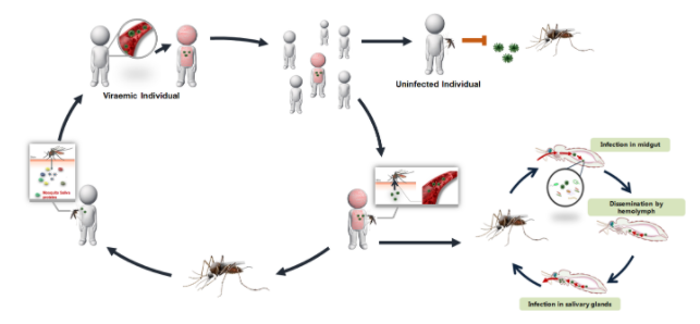图1.蚊媒病毒“宿主-蚊”传播循环
