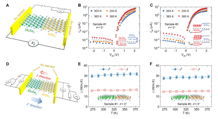 图3.MoSe2-WSe2异质结热整流机理揭示