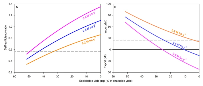 通过缩小可利用产量差结合扩大水稻面积提高非洲水稻自给率的路径