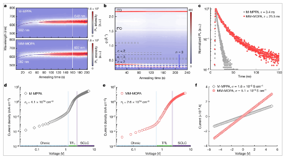 发光二极管(LED)是新型显示技术的核心部件,更是新一代信息技术产业之首。钙钛矿发光二极管(LED)作为最新兴起的显示技术,具有高色纯度、广色域、加工工艺简单、低成本等优势,是国内外光电器件领域的研究热点。目前,作为显示三基色之一的绿光钙钛矿LED的发展十分迅速,而关键的红光钙钛矿LED(620-650 nm)性能遭遇瓶颈,尤其在高偏压下光谱稳定性差,制约了钙钛矿LED在全彩显示领域的应用。