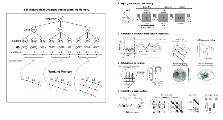 Fan, Y., Wang, M., Fang, F., Ding, N.*, Luo, H.* (2024) 2-D Neural Geometry Underpins Hierarchical Organization of Sequence in Human Working Memory. Nature Human Behaviour. DOI: 10.1038/s41562-024-02047-8