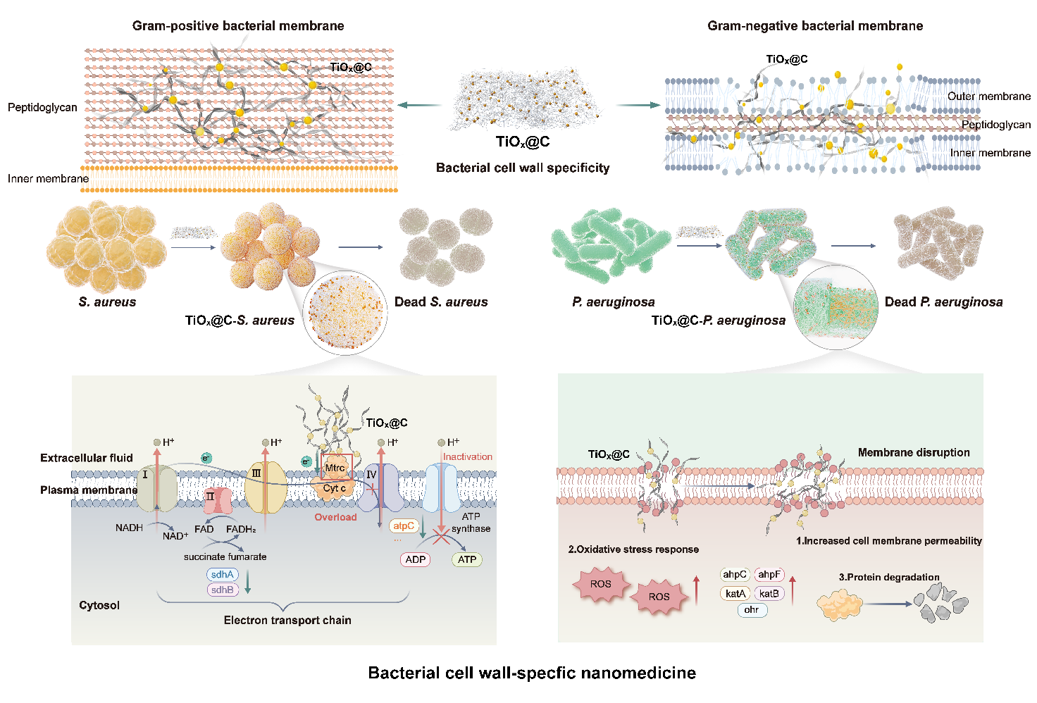 3月22日,《Nature Communications》杂志在线发表了一项纳米催化医学技术突破:中国科学院上海硅酸盐研究所施剑林院士团队成功开发了一种基于细菌细胞壁结构特异性原理响应的纳米药物(TiOx@C),其通过电子-机械干预机制,实现对耐药金黄色葡萄球菌(S. aureus)和铜绿假单胞菌(P. aeruginosa)的高效杀伤,在动物感染模型中验证了抗感染和促伤口愈合性能。