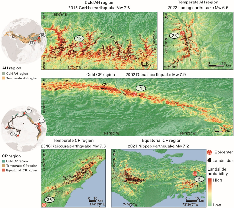 全球5个地震带—气候区典型强震诱发滑坡空间概率预测
