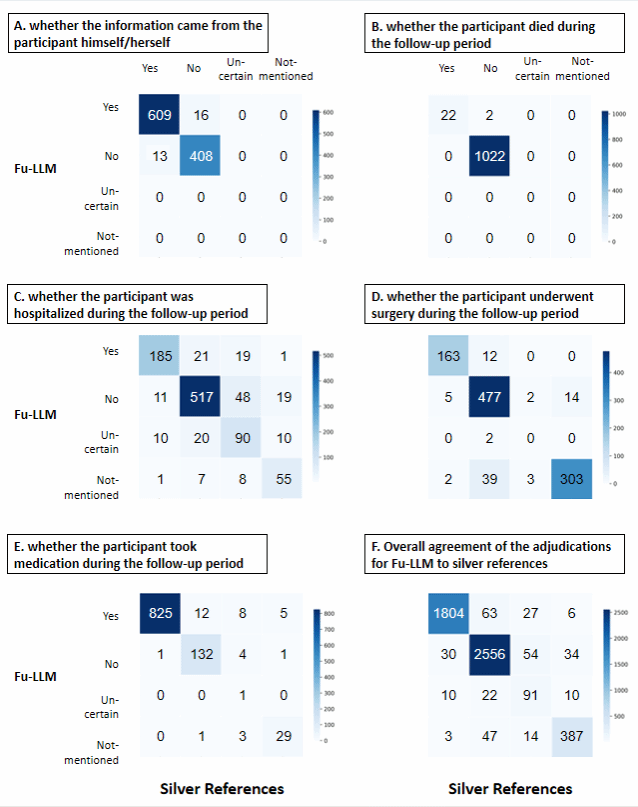 研究基于中国CT-FFR研究3(China CT-FFR Study 3)的多中心随机临床试验数据,开发了一款领域专用的大语言模型——Fu-LLM。该模型通过对1046例电话随访对话文本进行监督微调,并结合数据增强策略(包括数据重写和数据合成),生成了19162条训练样本,显著提升了模型对临床对话的上下文理解能力。Fu-LLM能够自动裁决五项关键临床事件:信息来源、死亡、住院、手术(如有创性冠状动脉造影)和用药情况,输出“是”、“否”、“不确定”或“未提及”分类结果。