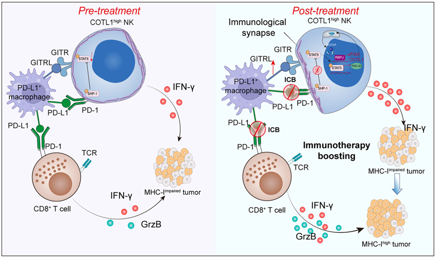 图 COTL1high NK介导免疫治疗响应机制图