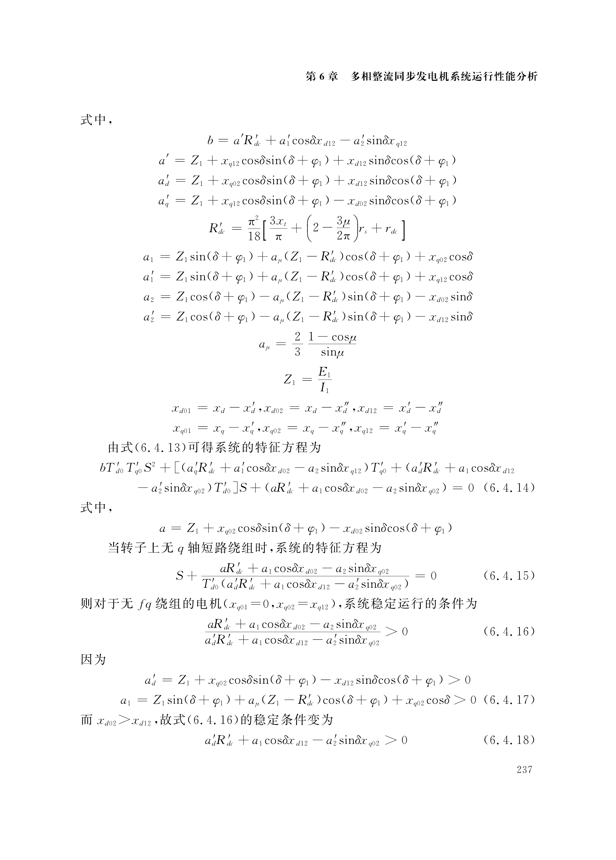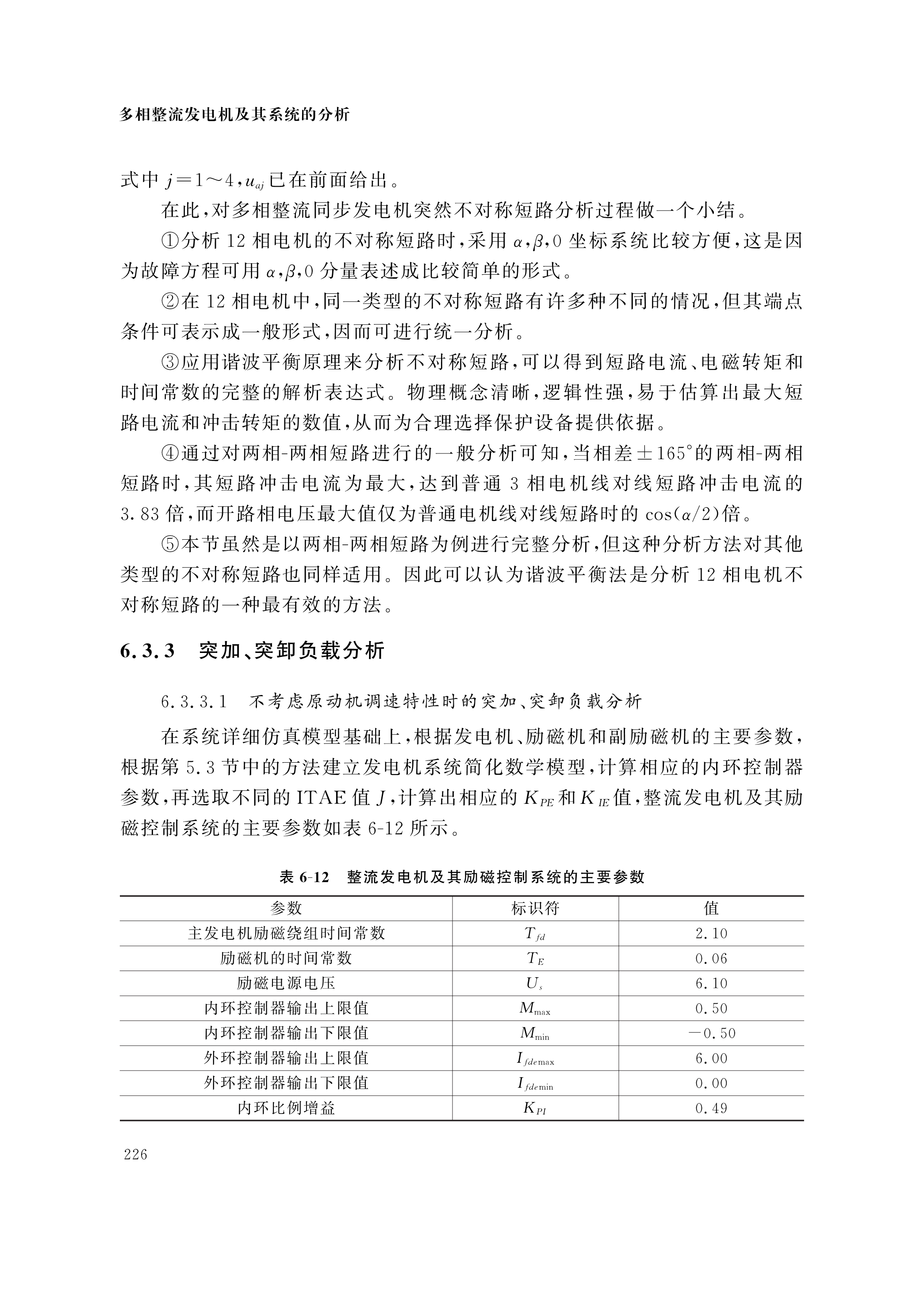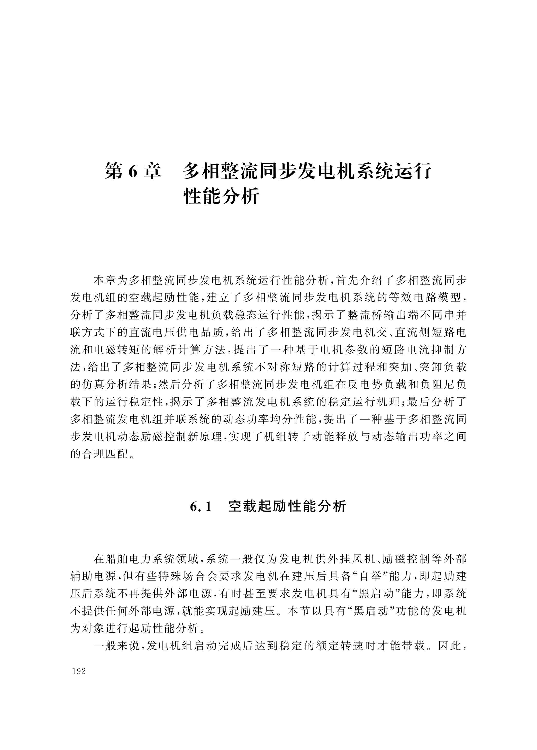 多相整流发电机及其系统的分析:第6章 多相整流同步发电机系统运行性能分析