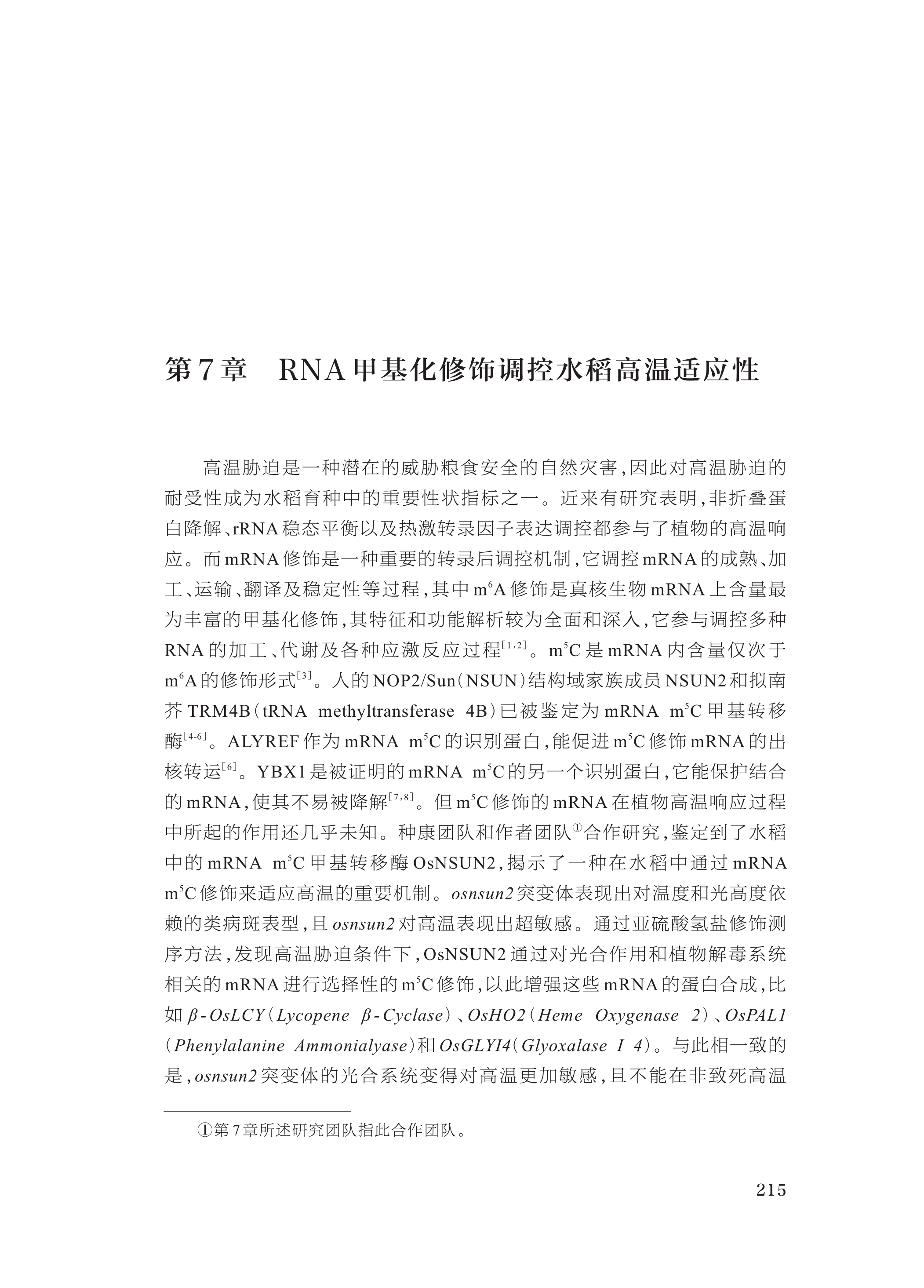 RNA甲基化表观转录组学:第7章 RNA 甲基化修饰调控水稻高温适应性