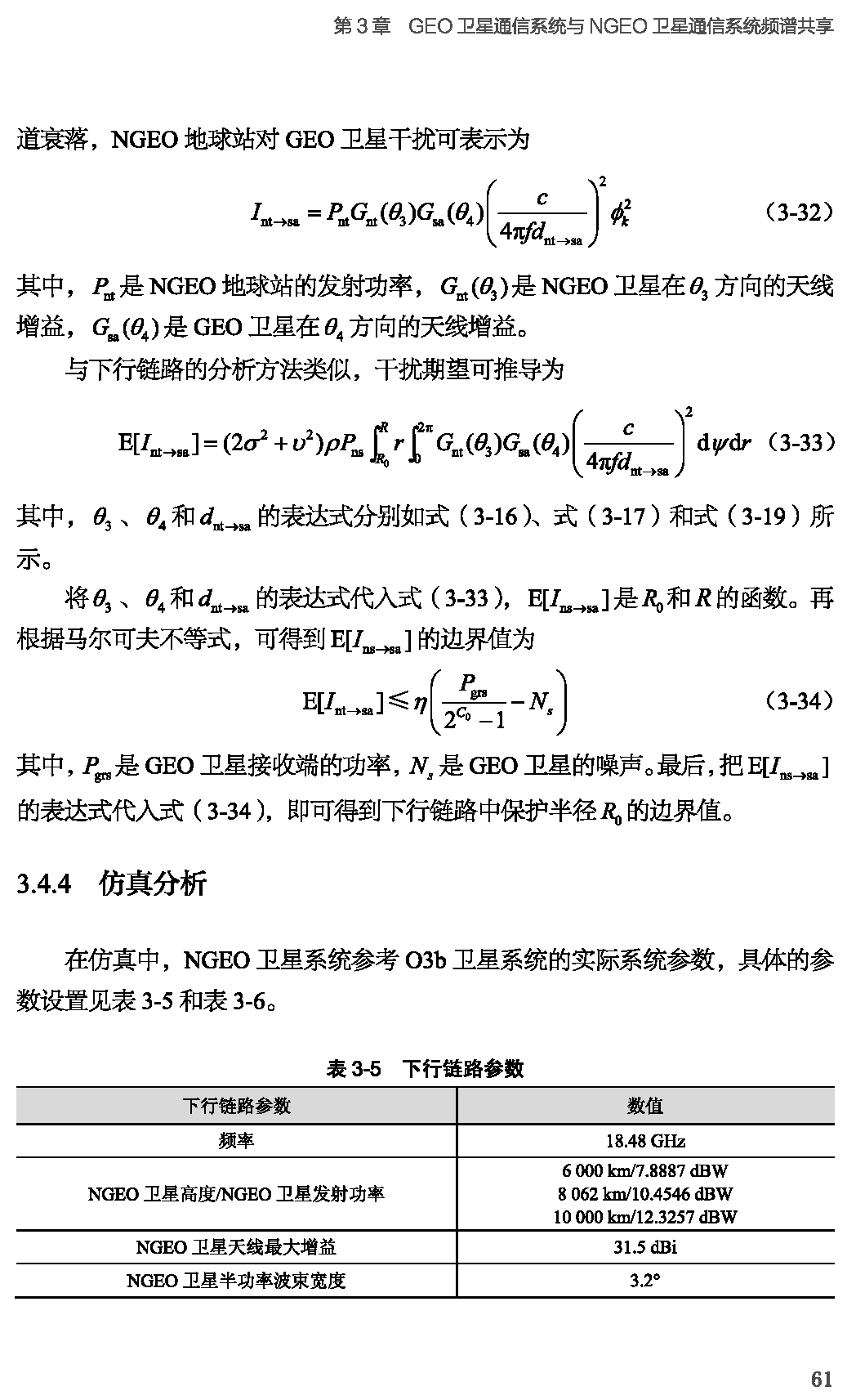 空间信息网络协同传输与资源管理:第3章 GEO卫星通信系统与NGEO卫星通信系统频谱共享