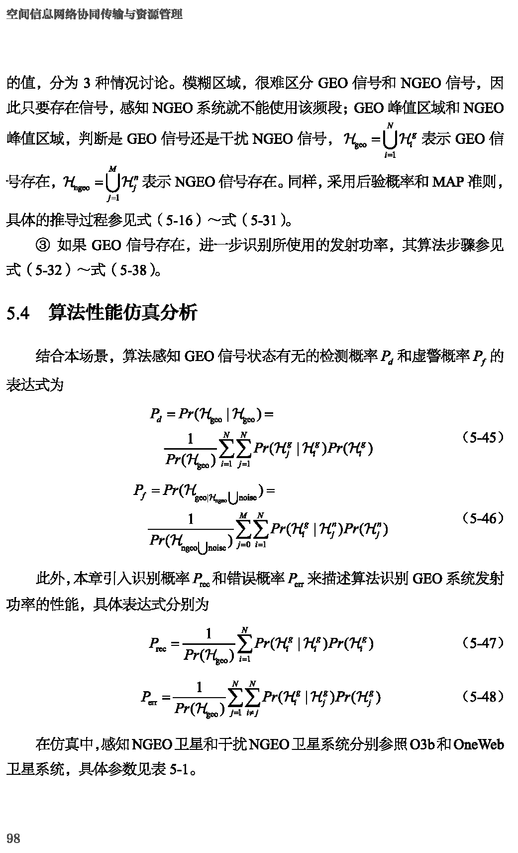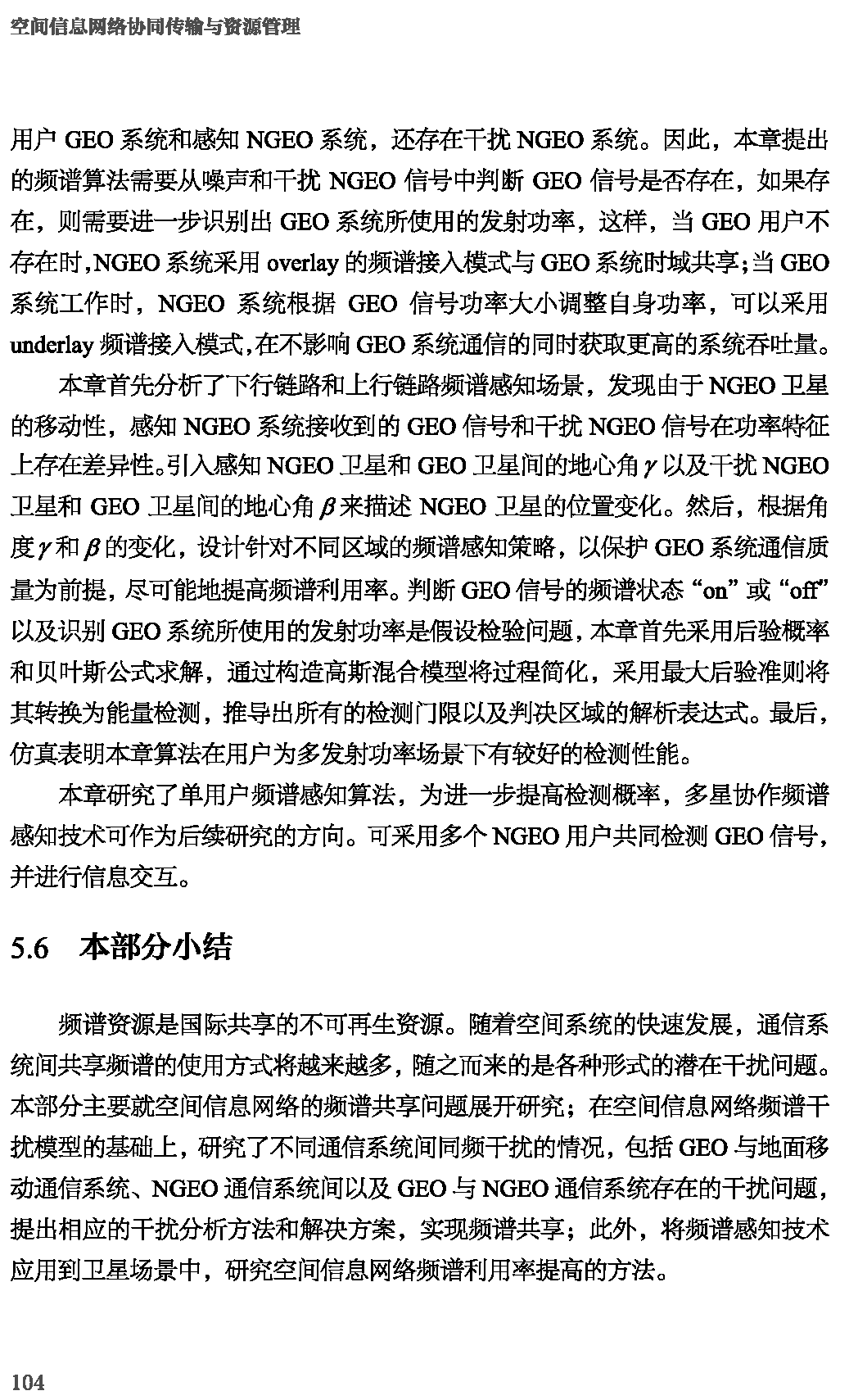 空间信息网络协同传输与资源管理:第5章 NGEO卫星通信系统和GEO卫星通信系统中的频谱感知技术