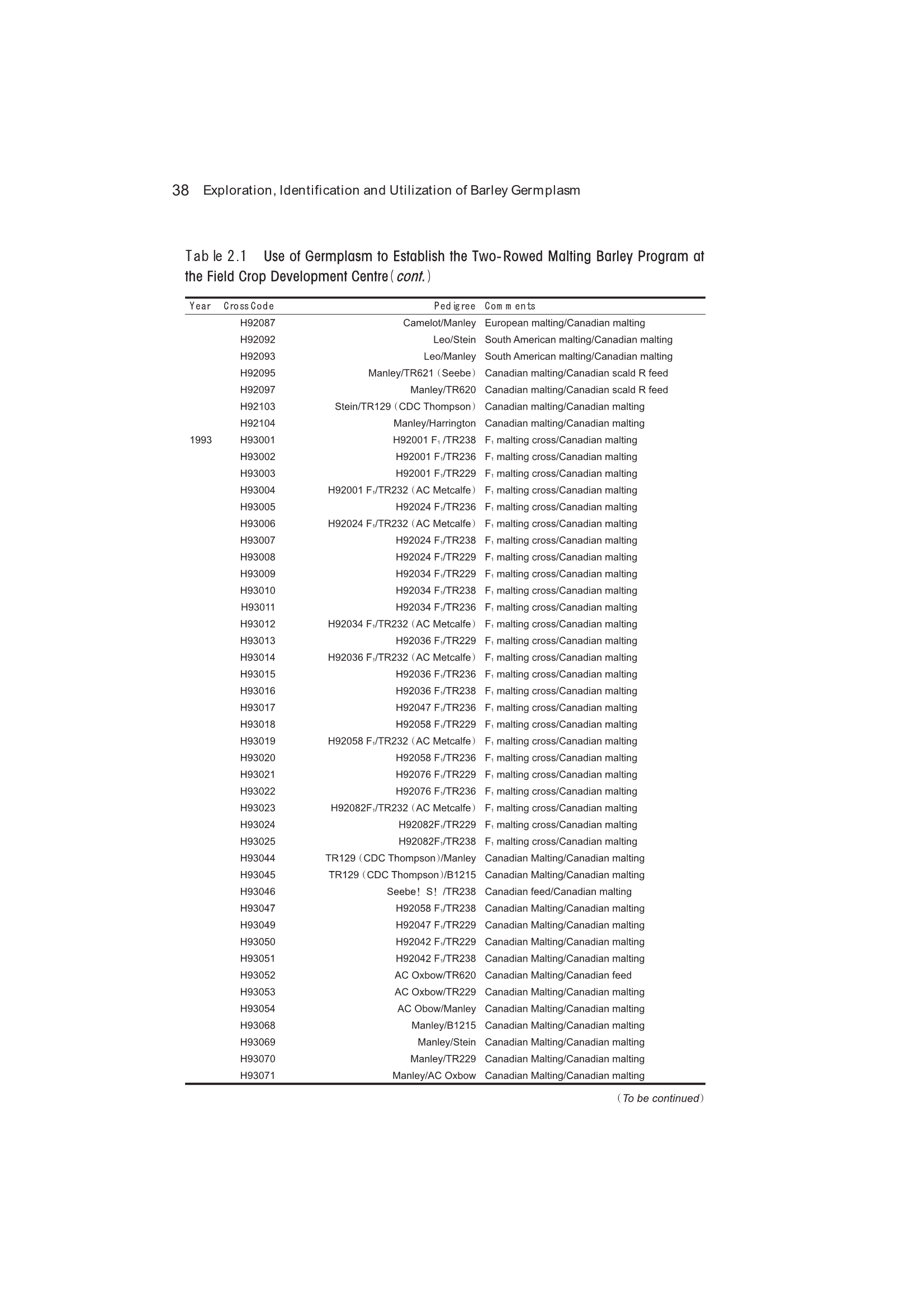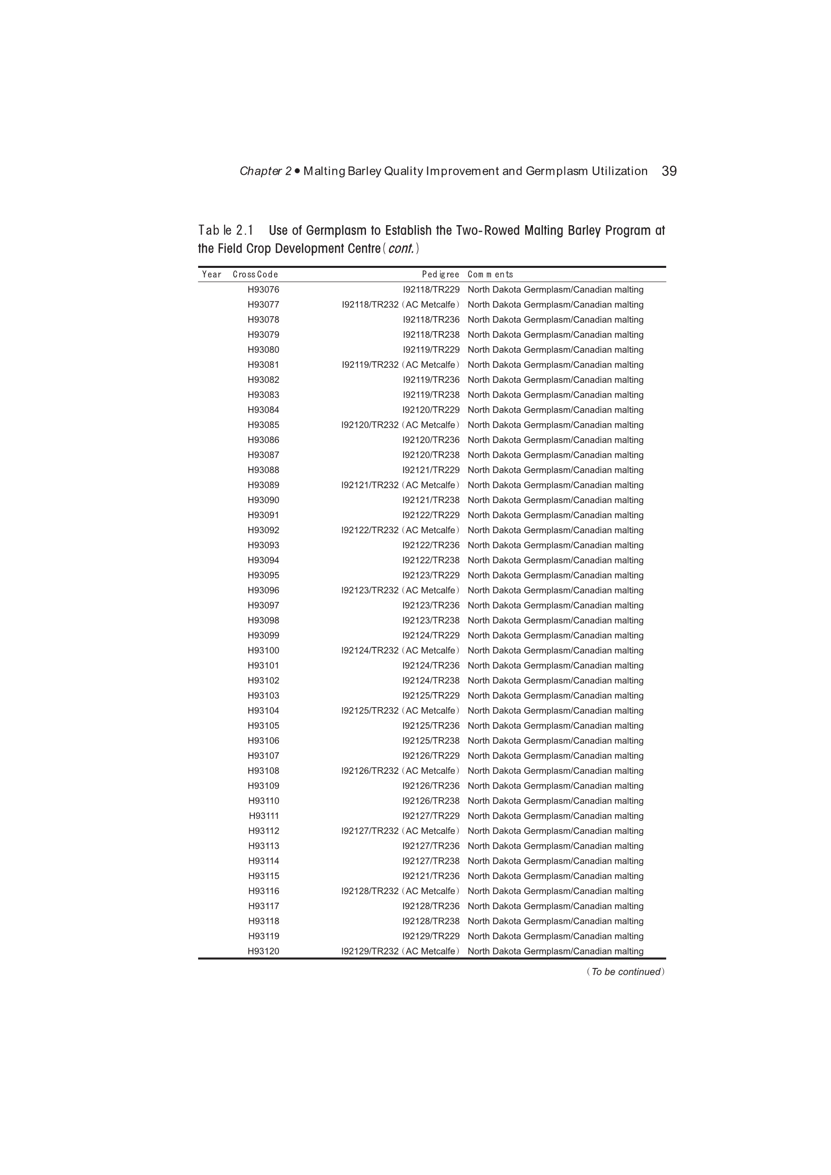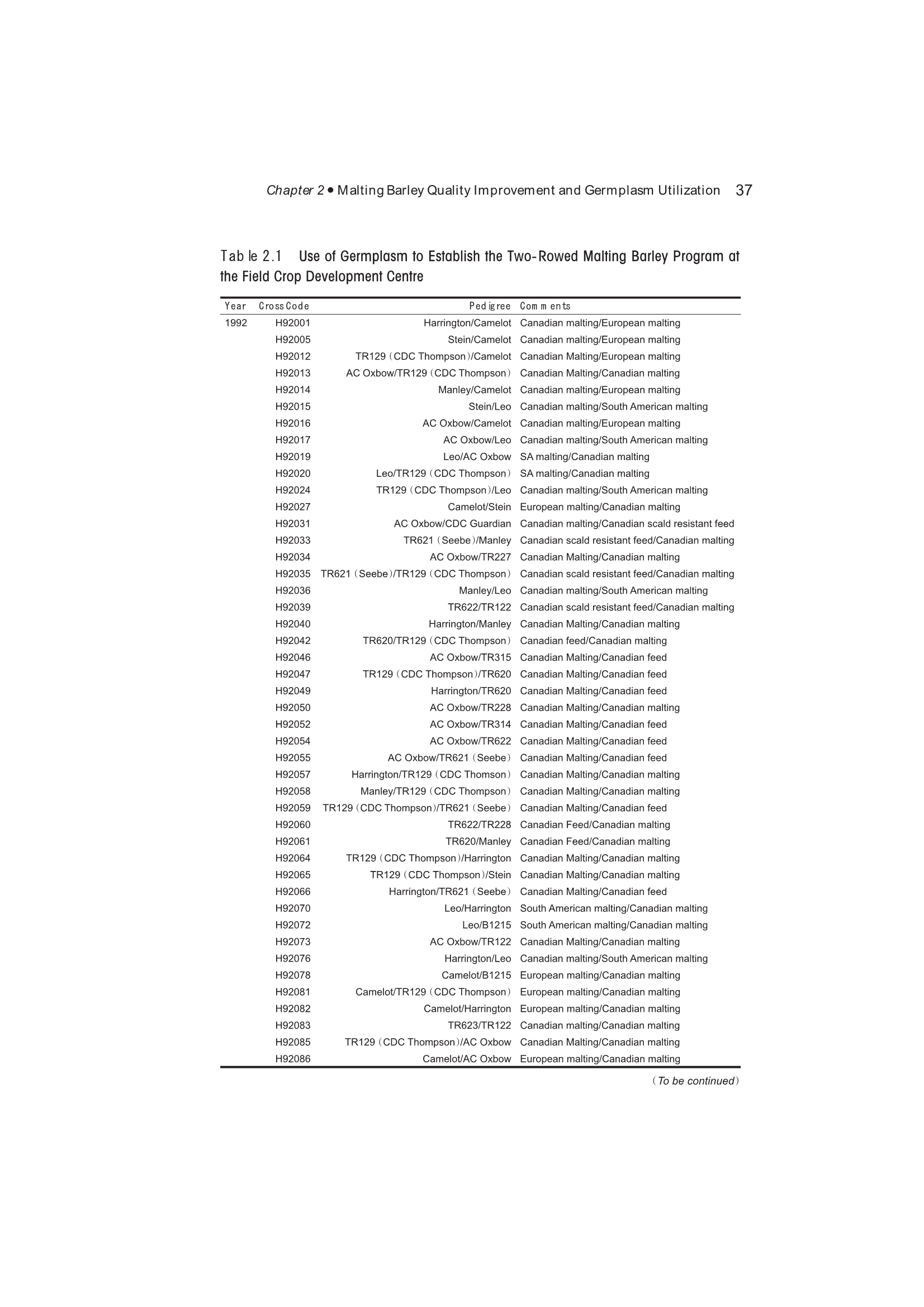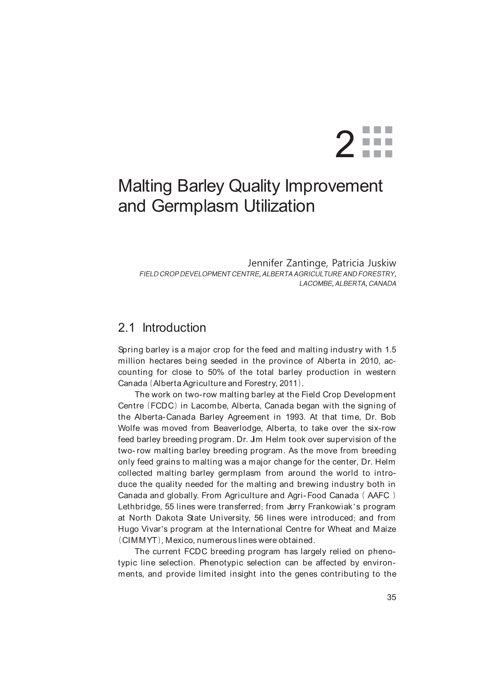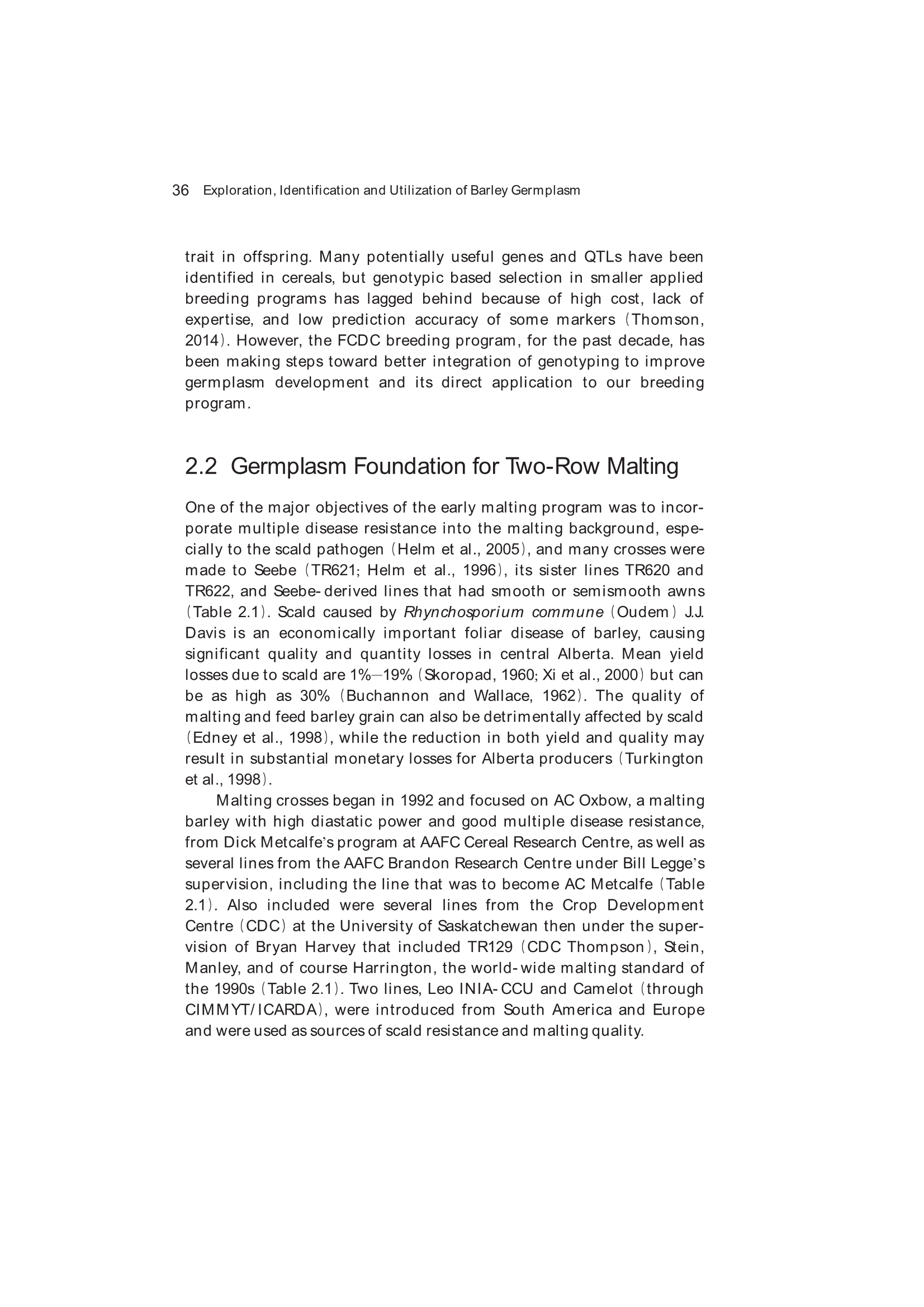 2.2 Germplasm Foundation for Two-Row Malting