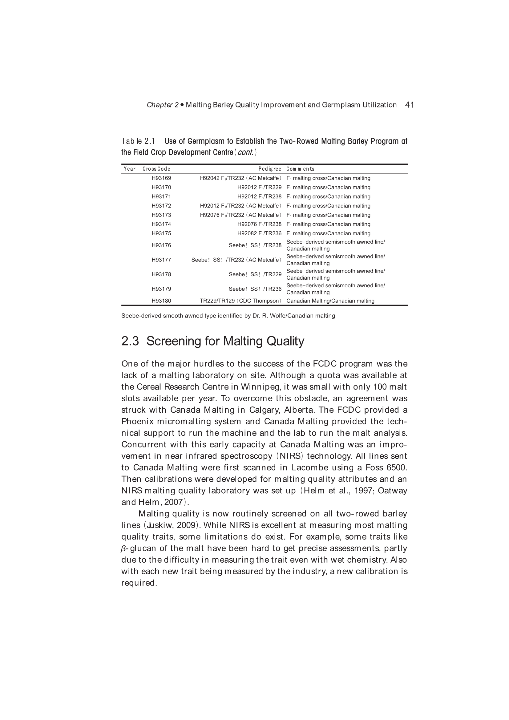 2.3 Screening for Malting Quality