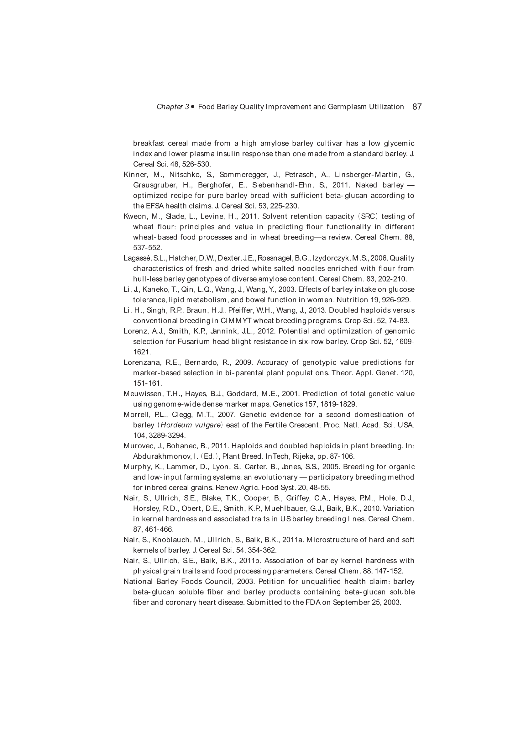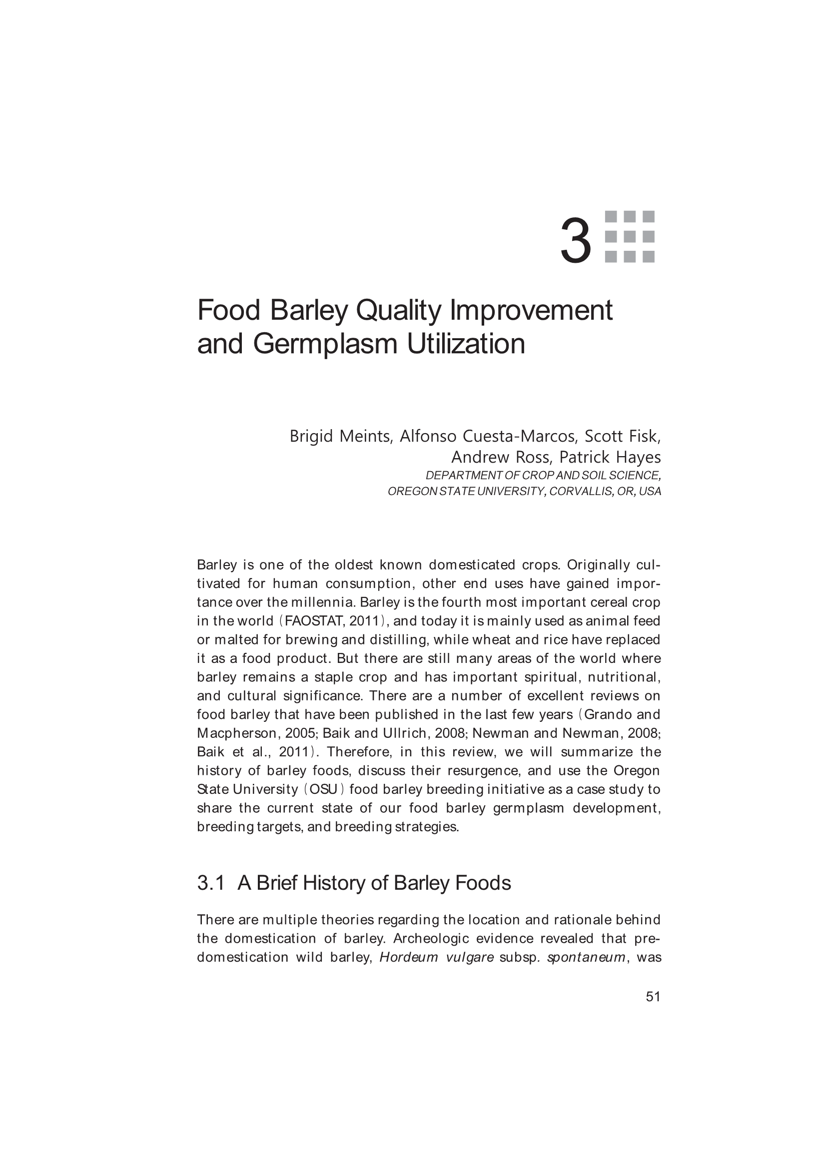 Exploration, Identification and Utilization of Barley Germplasm(《大麦种质资源创新与利用》):第3章 Food Barley Quality Improvement and Germplasm Utilization