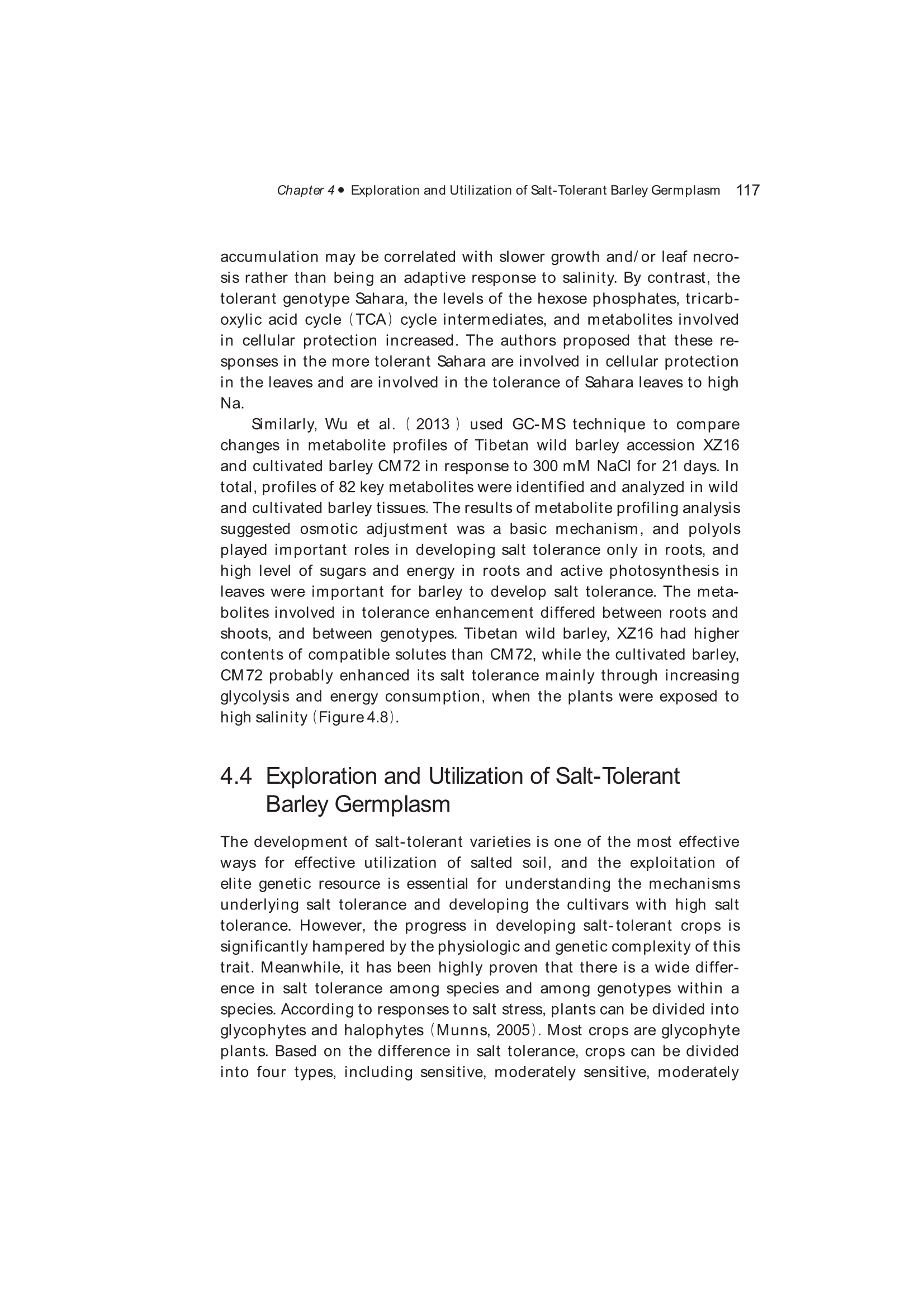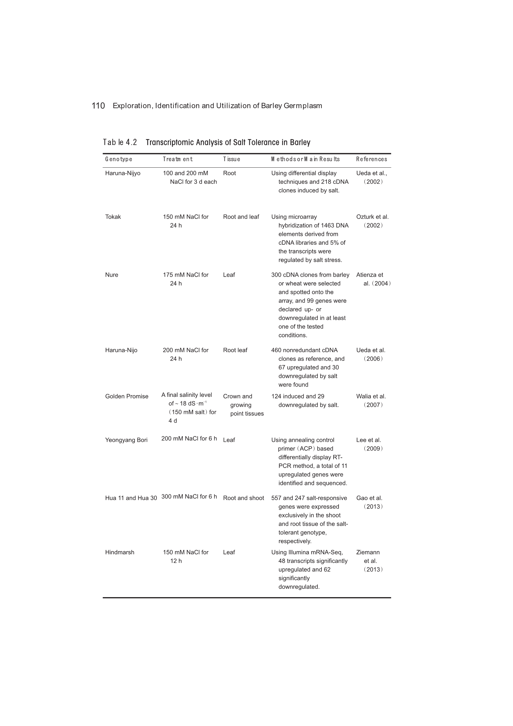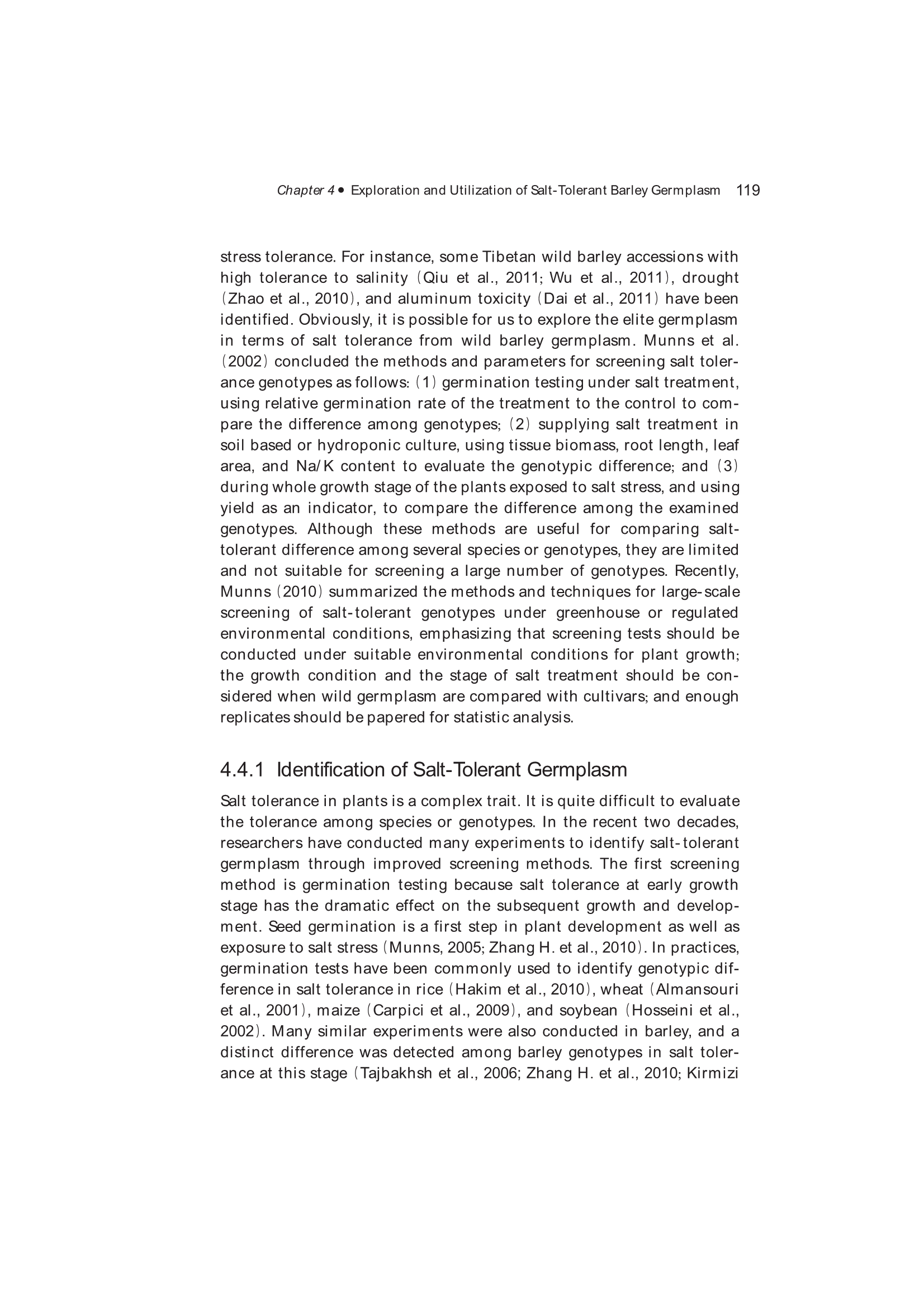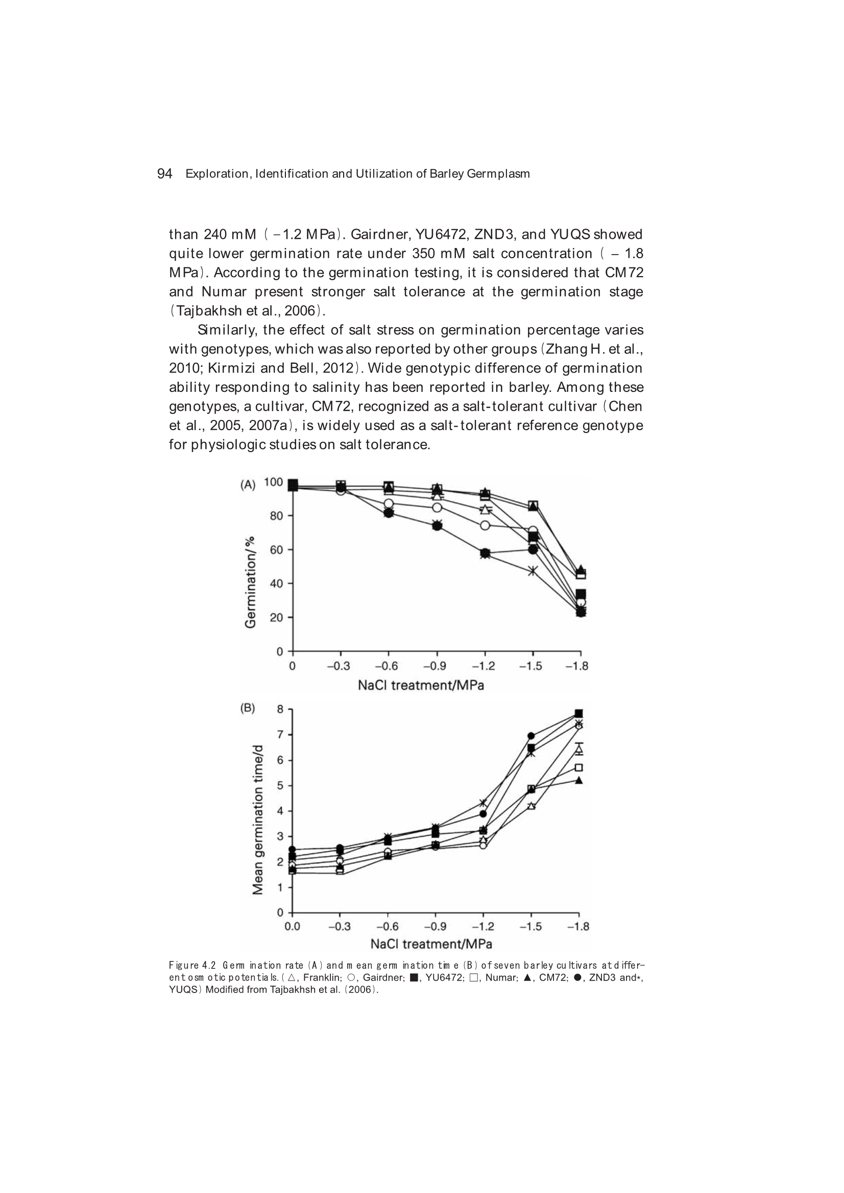 Exploration, Identification and Utilization of Barley Germplasm(《大麦种质资源创新与利用》):第4章 Exploration and Utilization of Salt-Tolerant Barley Germplasm